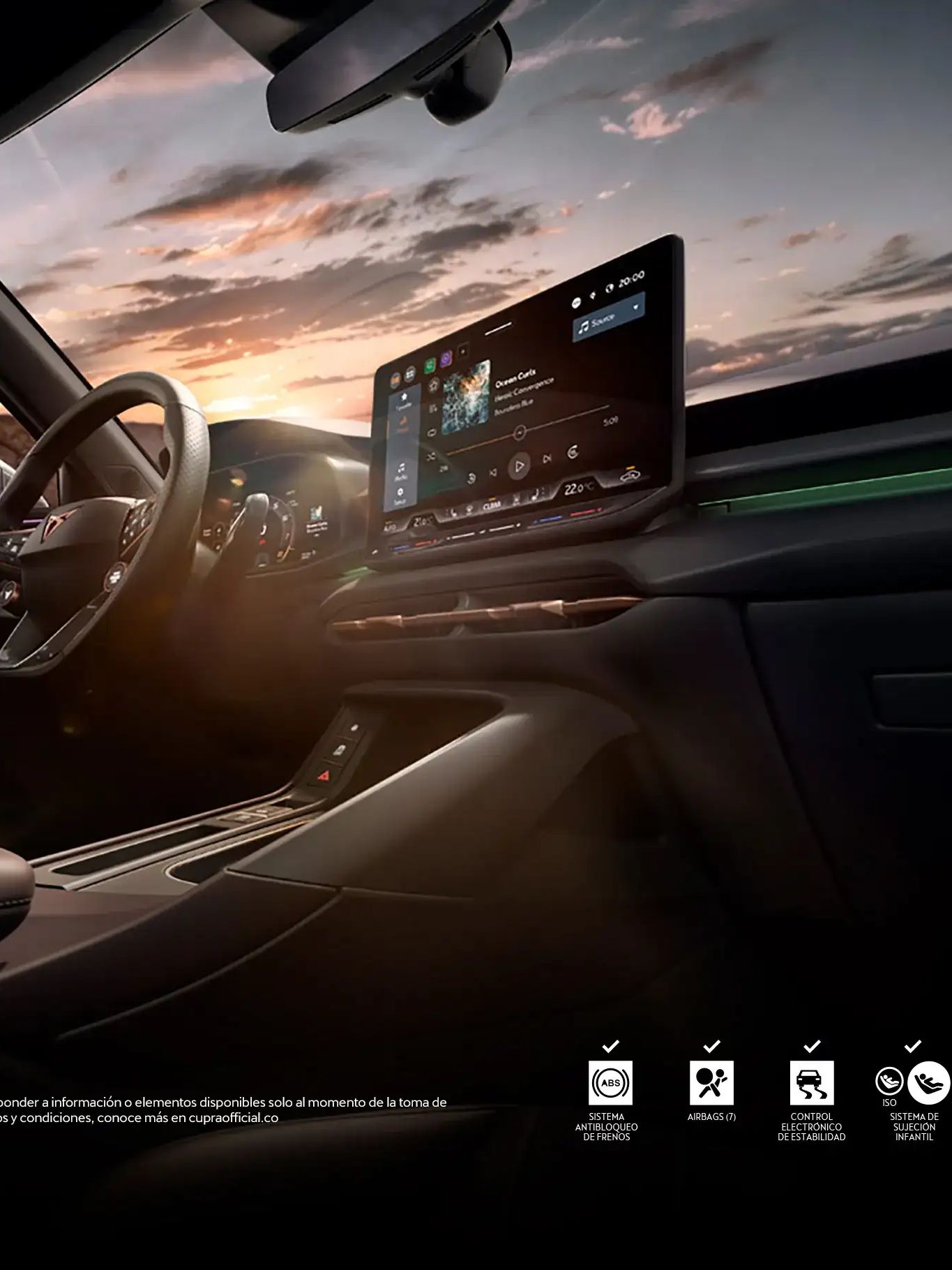 El Nuevo CUPRA Terramar equipa asistentes como el Control Crucero Adaptativo (ACC), que regula la velocidad según el tráfico, y el asistente de frenado de emergencia con pre-crash que anticipa riesgos en la vía, además de monitoreo de fatiga y distracción del conductor. Un conjunto de tecnologías que convierte cada trayecto en una experiencia más segura y precisa.